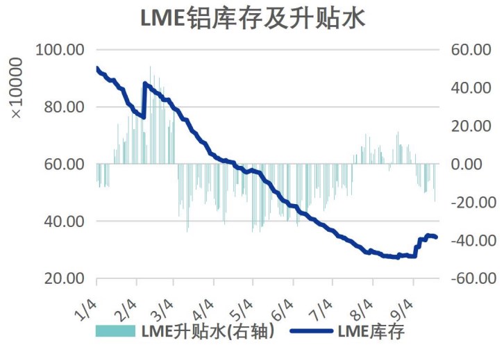 3.日本丸紅商事(MarubeniCorp)表示,截至2022年8月底,日本三大主要港口的鋁庫存環比增加9.8%,至399,800噸,創下多年高位。據悉,當地汽車需求疲弱,鋁庫存出現攀升,且三季度鋁升水也較此前出現回落。