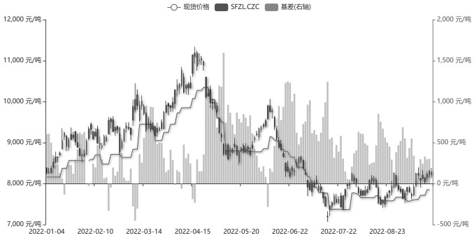 圖為硅鐵期現價差走勢