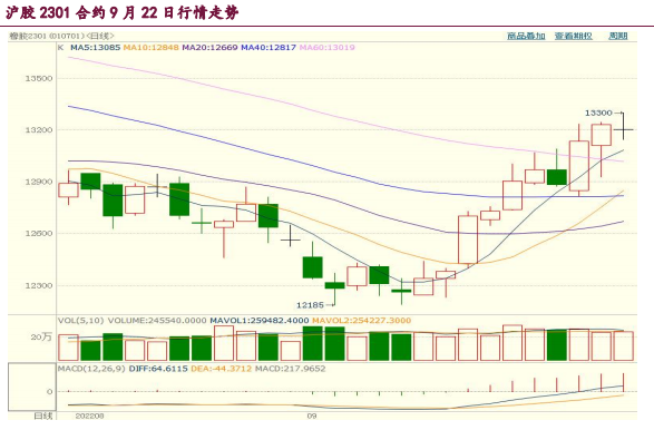 其中滬膠2301合約小幅收漲,期價最高漲至13300元/噸,最低下探至13145元/噸,截止收盤時滬膠2301合約小幅收漲1.11%或145元/噸,至13205元/噸,成交量達245540手,較昨日略微增加;持倉量小幅減少287手,至163159手。