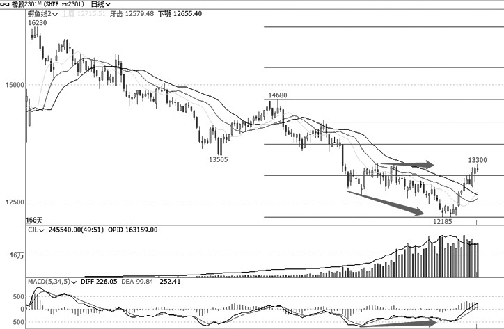 如果后市能夠突破,就形成了對下跌趨勢的否定,回調整固后將開啟一輪漲勢;但如果止步于此,那么后市將會復雜多變,要么回調至12645元/噸一線再度上攻,進而形成“頭肩底”形態,突破走高;要么就會無功而返,繼續處于振蕩走低的下跌趨勢當中。