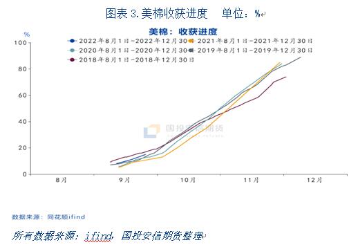 目前美棉處于收獲初期,整體收獲進度正常,從歷年的美國農業部對于產量的估算來看,基本上10月份的產量預計均十分接近最終產量,10月份之后的產量預估的調整幅度均較小。截止9月25號,美棉15個棉花主要種植州棉花生長優良率為31%,上周為33%,較上周下調2個百分點;去年同期水平為65%,相差34個百分點,仍然較往年正常水平偏離度擴大。截止到9月25日,美棉15個棉花主要種植州棉花吐絮率為67%,上一周美棉吐絮率為59%,去年同期水平為58%,高9個百分點;前五年同期平均水平在62%,約高5個百分點。截止9月25號,美棉15個棉花主要種植州棉花收割率為15%;去年同期水平為11%,較去年快4個百分點。較近五年同期平均水平略高1個百分點。美棉優良率仍然偏低,由于前期持續嚴重的干旱,優良率基本不會在做大的調整,目前收獲進度總體正常,降雨偏少的天氣也有利于棉花的收獲。