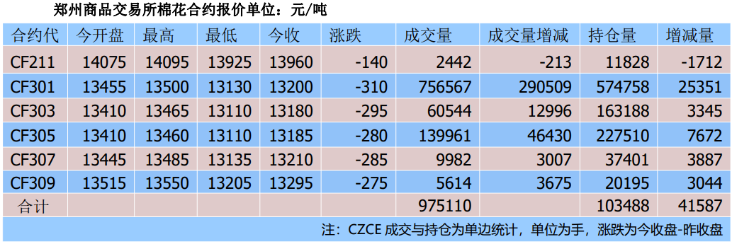 昨日鄭棉主力01合約陰線報收13200元/噸,期價較上一交易日下跌310元/噸。持倉增加2.5萬手,至57.5萬手。從周氏超贏技術面來看,ck模式轉空,F2指標、資金流量指標顯示空,技術指標處于弱勢。