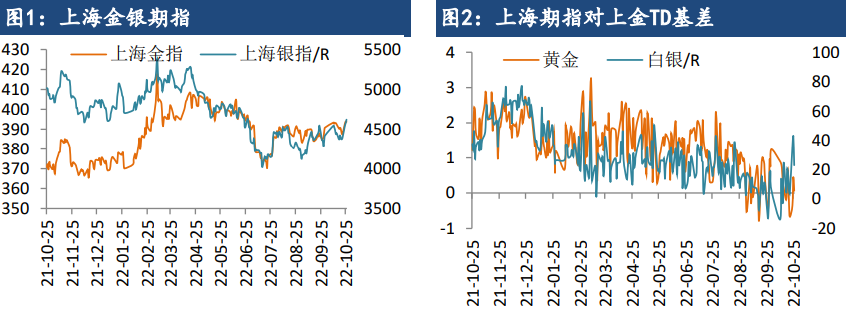 由于近期人民幣兌美元匯率與美元指數的負相關性顯著增強,因此國內金銀價格大致維持區間震蕩。