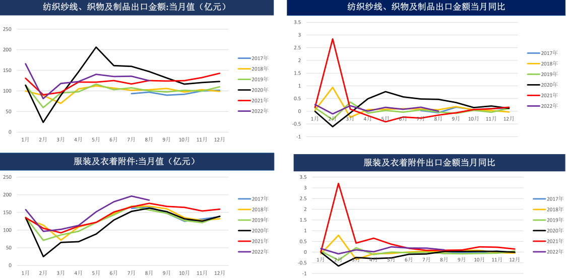 服裝鞋帽紡織品類零售額88月為963億元,同比增加5.1%。