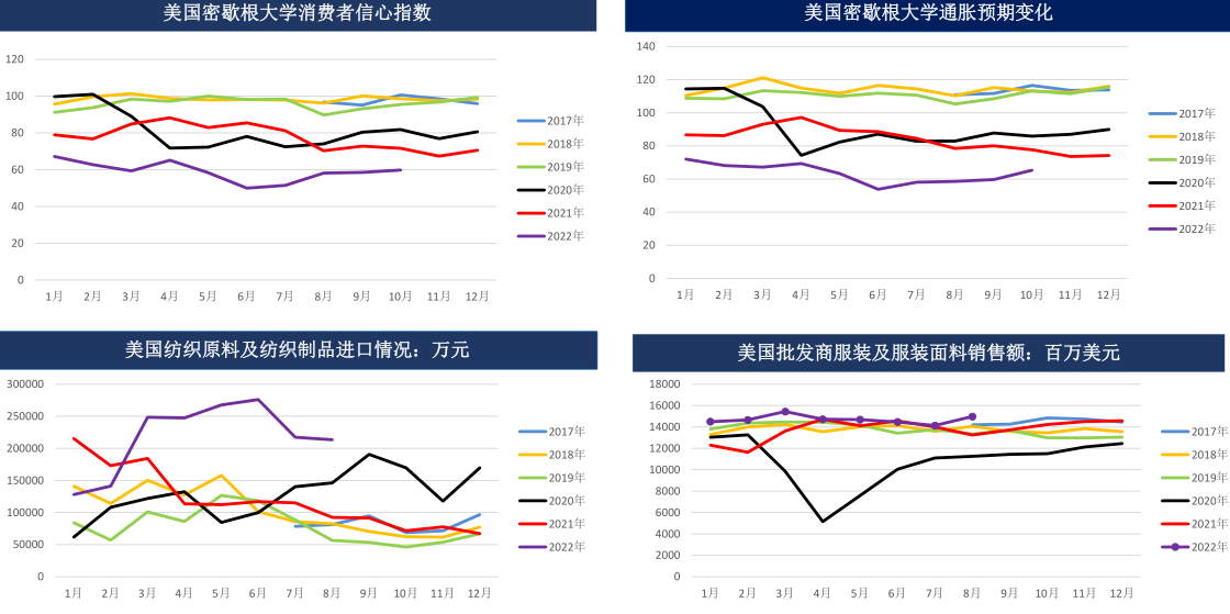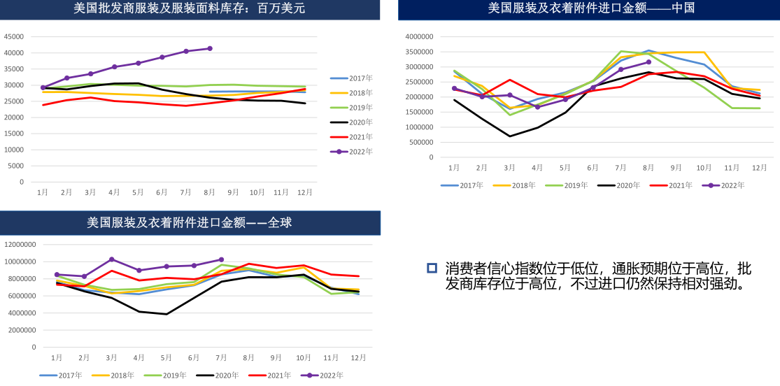 消費者信心指數位于低位,通脹預期位于高位,批發商庫存位于高位,不過進口仍然保持相對強勁。
