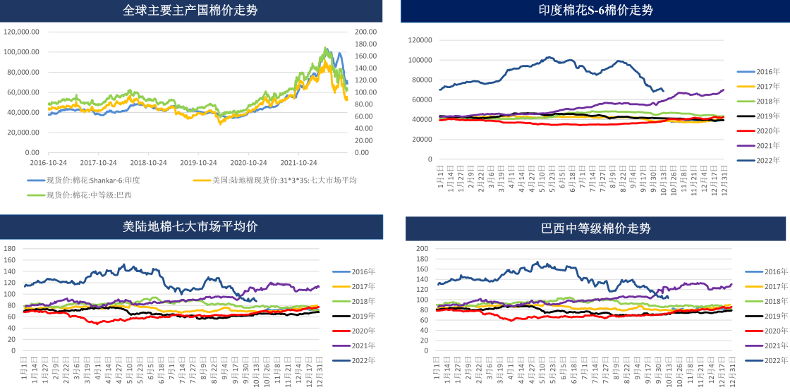 期末庫存大幅上調68萬噸至1913萬噸,主要增量來自于印度27萬噸,中國23萬噸,強化了新年度棉花供應趨于寬松化的預期。