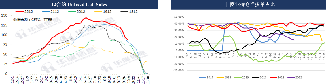 CFTC發布ICE合約上ON-CALL數據報告:截至10月7日,ON-CALL2212合約上賣方未點價合約減持3210張至38288,折87萬噸,環比前一周減持7萬噸。2022/23年度的合約賣方未點價合約減至80953,折184萬噸,環比前一周減持1830張,折約4萬噸。