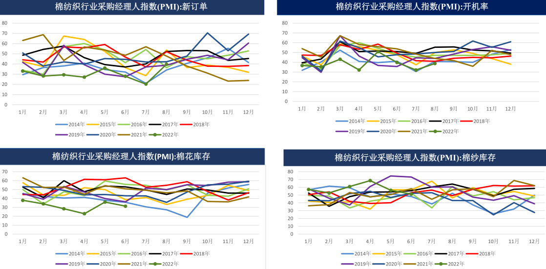 據海關數據顯示,2022年8月我國進口線約7萬噸,環比持平,同比下降約61.1%。2022年1-8月我國進口棉紗線約86萬噸,同比下降約42.2%。2021/22年度(2021.9-2022.8)我國進口棉紗線149萬噸,同比下降約32.0%。