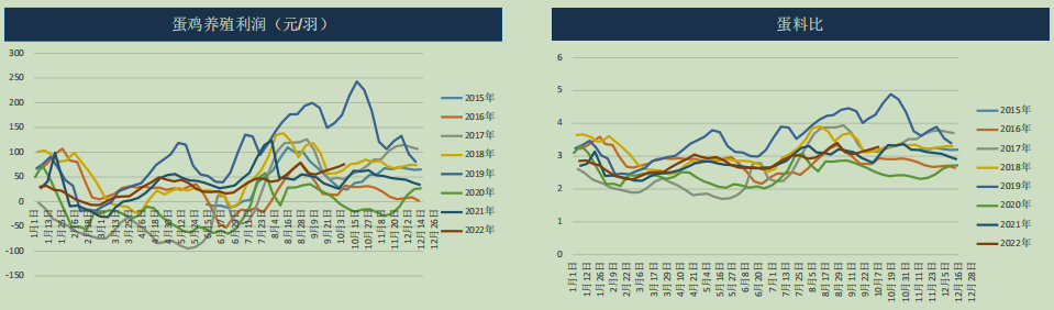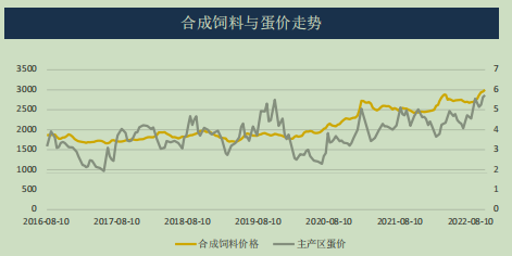 在飼料價格大趨勢下跌的時候,雞蛋價格也呈現出較為明顯的下滑,而成本較為堅挺時,雞蛋價格也較為明顯。