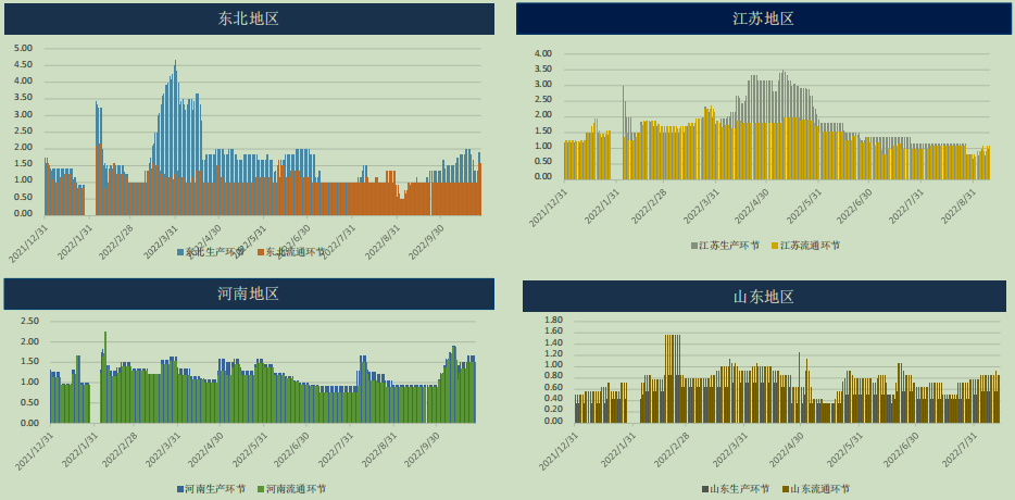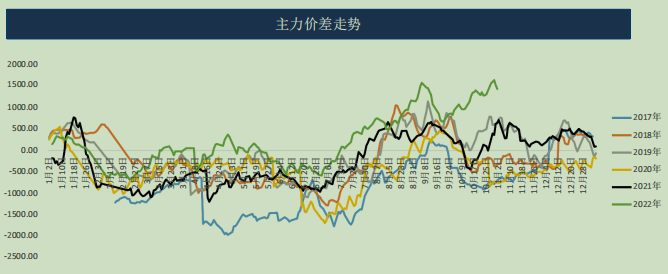 目前基差情況來看,截至10月28日,雞蛋基差在1423元/500KG附近,現貨節后表現強勢,基差繼續走強。