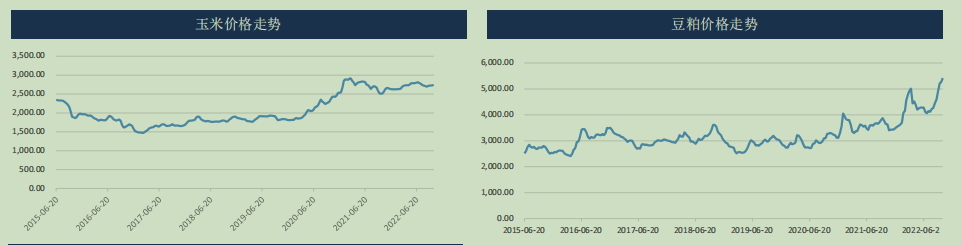 雞蛋的價格波動明顯比飼料波動較大,區別在于因為雞蛋為快速消費品,決定其短期價格的主要因素為自身的供給與需求, 但比如當價格長期處于低位或高位時,則會對雞蛋價格形 成較大影響。目前來看,玉米,價格維持高位震蕩,間接支撐蛋價。