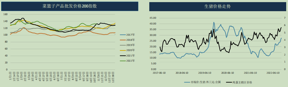2022年10月28日,菜籃子產品批發價格200指數為131.11 ,周環比減少1.20。 2022年10月30日,全國(品種:外三元)均價為28.26元/公斤,豬價較昨日下跌了0.20元/公斤,環比上漲16.92%,同比上漲95.71%。