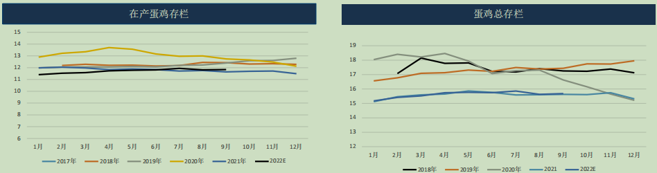9月蛋價先落后漲,整體維持相對高位。當前適齡老雞存欄量不多,養殖單位整體淘雞積極性不高,中秋節前后稍多,450日齡以上老雞占比9.75%,環比增加0.10個百分點。當前飼料成本維持相對高位,養殖單位淘雞后觀望心態濃厚,整體補欄積極性仍較一般,120日齡以下后備雞占比14.74%,環比略增0.01個百分點。本月蛋市整體供應量仍處低位,主產蛋雞占比環比稍減,120-450日齡產蛋雞占比75.51%,環比減少0.11個百分點。后市看,當前待淘老雞存欄量有限,后期整體可淘量不多,預計后期占比或繼續維持低位;雞苗及青年雞補欄積極性略有好轉,但受高成本限制,預計后備雞占比或增幅有限。