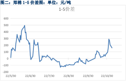 11月7日收盤,鄭棉2301-2305合約價差為160元/噸,價差較上一交易日下跌45元/噸。