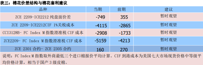 11月7日,鄭棉2301合約與CCI3128B指數期現價差為-2251元/噸,價差較上個交易日下跌12元/噸。