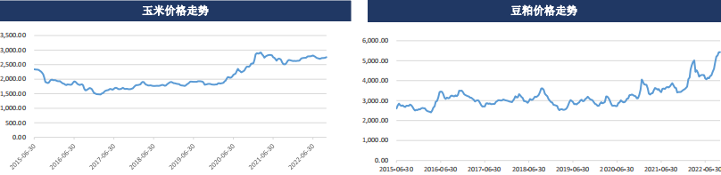 雞蛋的價格波動明顯比飼料波動較大,區別在于因為雞蛋為快速消費品,決定其短期價格的主要因素為自身的供給與需求,但比如當價格長期處于低位或高位時,則會對雞蛋價格形成較大影響。目前來看,玉米,價格維持高位震蕩,間接支撐蛋價。