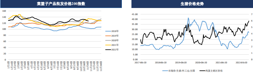 在飼料價格大趨勢下跌的時候,雞蛋價格也呈現出較為明顯的下滑,而成本較為堅挺時,雞蛋價格也較為明顯。
