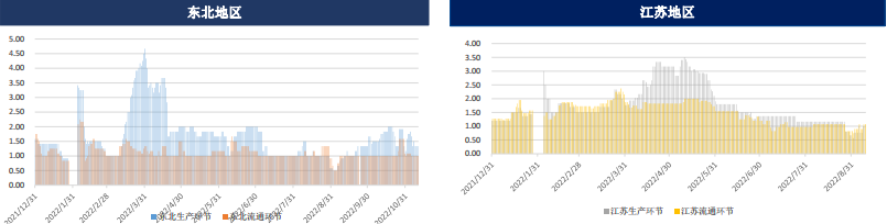 目前基差情況來看,截至11月11日,雞蛋基差在1340元/500KG附近,現貨見頂回落,基差小幅走弱。