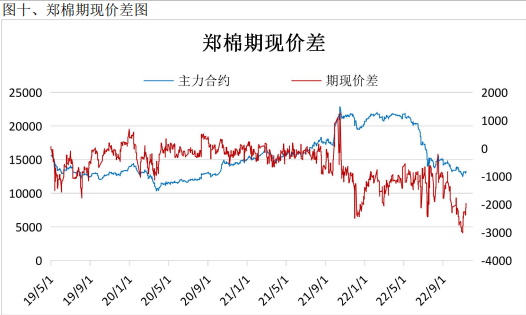 11月11日,鄭棉與CCI3128B指數價差為-1961元/噸,11月4日為-2263元/噸,期現價差有所縮小。
