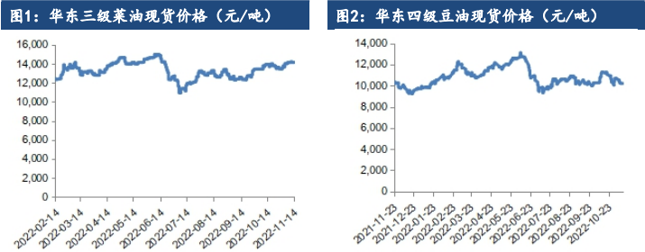 東遠大庫,24度,現貨,01+160。華南不定庫,24度,11月船,01+200。華南不定庫,24度,12月船,01+250。東莞庫18度,現貨,01+300。華東三級菜油報價:01+400元/噸(1-3月),05+900(2-5月),現貨01+2650。華東一豆基差報價:Y2301+1050元/噸(11月),Y2301+800元/噸(12-1月),Y2301+1100元/噸(2-3月)。