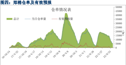 截至11月15日鄭棉倉單量5047張(21.7萬噸)減少81張(144噸)有效預報量為144張(6192噸),倉單及有效預報總量共22.3萬噸。