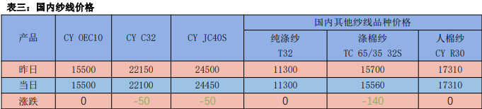 11月16日,現貨指數CCI3128B報價至15181元/噸(-32);CYIndexC32S報價22975元/噸(0);FCYIndexC32S(進口價格指數)報價25767元/噸(0);部分地區棉紗價格: