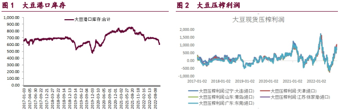 目前市場對美豆產量調整的關注度下降,并逐漸轉向美豆需求。對于拉尼娜影響下的南美大豆產量調整進入市場關注視野。基金凈多持倉高位運行繼續對美豆價格構成支撐。美豆期價易漲難跌對國內進口成本的支撐作用有所體現。