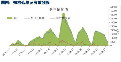 截至11月17日鄭棉倉單量1225張(5.2萬噸)減少3752張(16.1萬噸)有效預報量為121張(5203噸),倉單及有效預報總量共5.8萬噸。