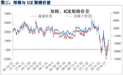 11月17日,鄭棉2301合約與CCI3128B指數期現價差為-1666元/噸,價差較上個交易日下跌123元/噸。