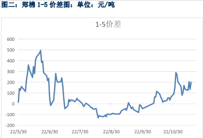 11月17日收盤,鄭棉2301-2305合約價差為200元/噸,價差較上一交易日上漲65元/噸。