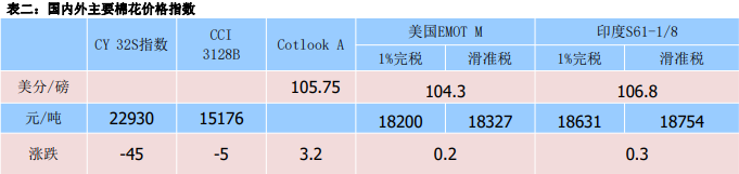 11月17日,現貨指數CCI3128B報價至15176元/噸(-5),期現價差-1666(01合約收盤價-現貨價),滌綸報價7300元/噸(-50),黏膠短纖報價13000元/噸(+0)CYIndexC32S報價22930元/噸(-45),FCYIndexC32S(進口價格指數)報價25950元/噸(+217);鄭棉倉單1228(-3752),有效預報121(-32)。美國EMOTM到港價104.3美分/磅(-0.2);巴西M到港價105.3美分/磅(-0.2)。截止到2022年11月16日,新疆地區皮棉累計加工總量175.63萬噸,同比減幅32.42%。