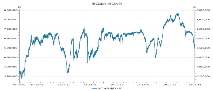 截至2022年11月18日港口進口大豆庫5690150噸。