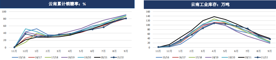 國內11月下旬開榨,廣西大部分糖廠的開榨時間或在11月25日之后,11月份新糖產量預估有限。去年開榨時間為11月18日。產區陳糖陸續清庫,不過銷區購銷不溫不火,當前國內疫情多點爆發,需要關注消費端采購補庫意愿。