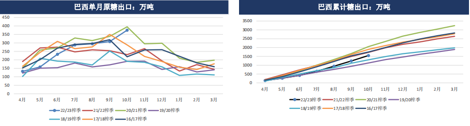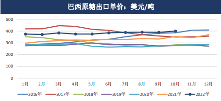 2022年,巴西10月出口糖375.01萬噸,同比增加60.8%。2022年4-10月巴西累計出口糖1801.24萬噸,同比增加6.11%。