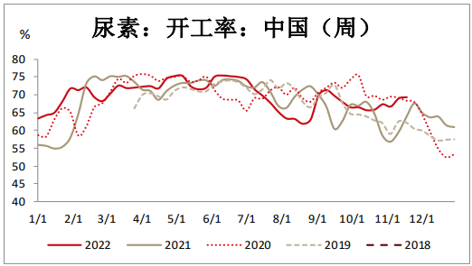 供應方面:國內尿素產能利用率69.35%,較上期漲1.30%,趨勢小幅上升。周期內新增5家企業停車,恢復時間預計在中下旬。中國尿素生產企業煤制產能利用率:66.90%,較上期漲0.86%;中國尿素生產企業氣制產能利用率:76.30%,較上期漲2.53%。下個周期預計有1-3家企業計劃檢修,而因部分停車時間不確定,加上前期停車企業恢復的時間不定,所以產能利用率變化趨勢大概率偏略降。