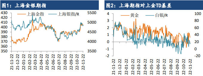 貴金屬小幅沖高回落,美元指數與美債收益率回落支撐金價,但股市上漲削弱避險需求;市場關注點轉移到將于周三公布的美聯儲11月會議紀要,預計該紀要將提供有關美聯儲12月是否放緩緊縮步伐的更多信息。由于美聯儲有可能在12月份開始放緩緊縮步伐,美元匯率在多個利空因素影響下轉為高位盤整,貴金屬或繼續偏強運行,關注美國經濟通脹表現。由于近期人民幣兌美元匯率與美元指數的負相關性顯著增強,國內金銀總體上跟隨外盤走勢但幅度偏小。
