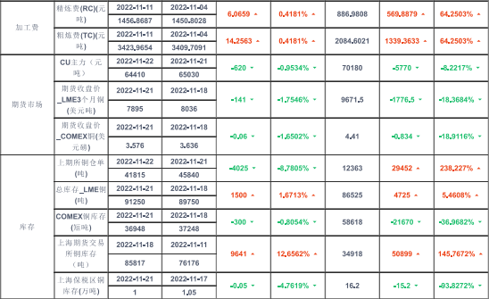 需求端:進11月電力基建開工逐浙步入淡季,線纜企業訂單放緩,開工率受限,精通杠消費難有起色。銅桿開工下半年整體處于平均值下方,電網投資12月份料進入加速階段,國家出臺金融16條穩定房地產行業,后續料迎來一定程度的需求修復。