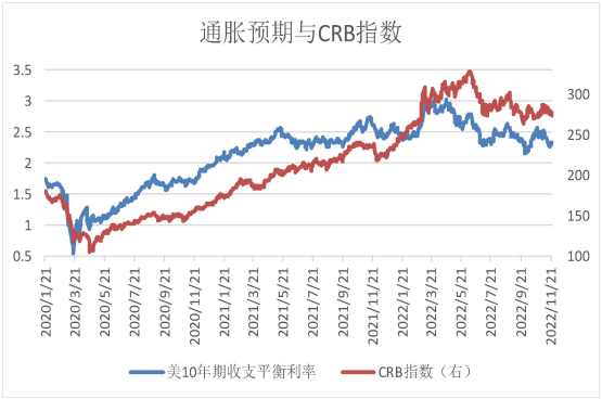上周盈虧平衡通脹率總體維持在2.33%附近,而CRB指數與價格皆有一定程度回落,更多影響短期通脹壓力。