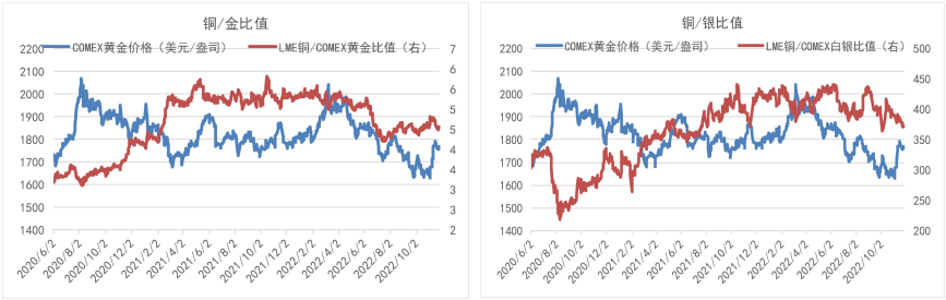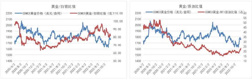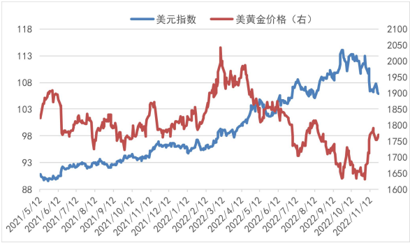 短期看,黃金與美指負相關性。上周美指先揚后抑總體收跌,利多貴金屬估值。衰退交易升溫下,10Y美債收益率回落,同時美聯儲11月FOMC會議紀要確認即將放緩加息,緩和加息預期,利多貴金屬并利空美指。