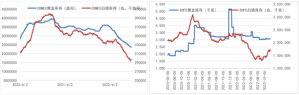 COMEX、SHFE金銀庫存