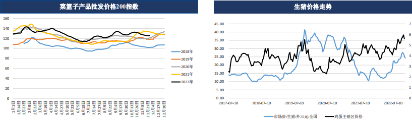 2022年11月25日,菜籃子產品批發價格200指數為125.76,周環比上漲0.19。