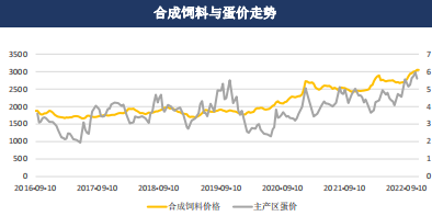 在飼料價格大趨勢下跌的時候,雞蛋價格也呈現出較為明顯的下滑,而成本較為堅挺時,雞蛋價格也較為明顯。
