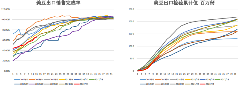 當前美豆銷售有所加速,整體處于同期偏慢水平。