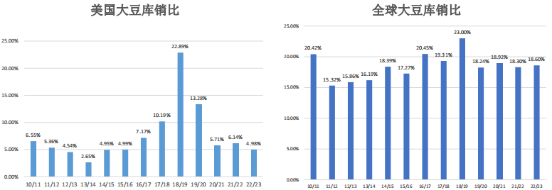 全球大豆庫消比依舊維持再18%-19%區間,為18.6%。