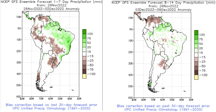 南美大豆產區天氣情況: