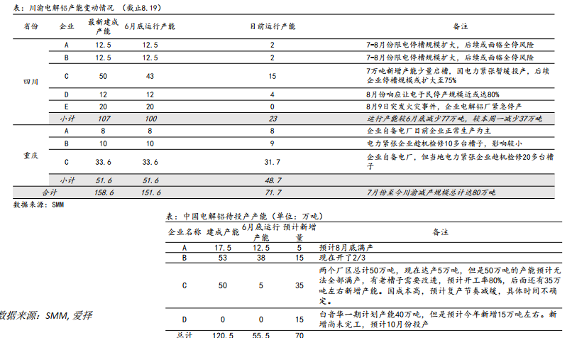 【云南電力緊張,電解鋁壓負荷20%以上,新疆等地受疫情影響發貨】