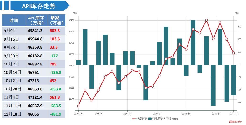 3.庫存:美國截至11月18日當周API原油庫存減少481.9萬桶,預期減少242.8萬桶;美國至11月18日當周EIA庫存預期減少105.8萬桶,實際減少369.1萬桶;庫欣地區庫存至11月18日當周減少88.7萬桶,前值減少162.4萬桶;截止至11月25日,上海原油庫存為617.2萬桶,增加192.1萬桶;偏中性。