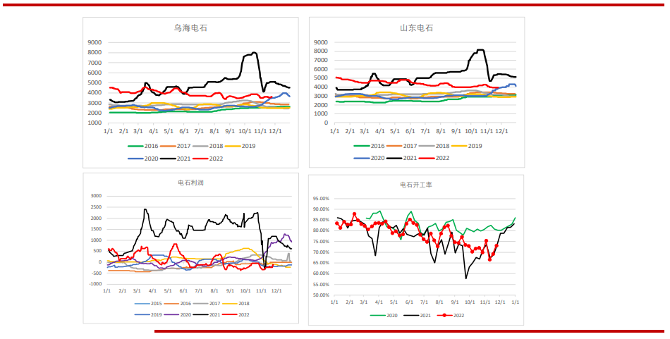上周電石開工環比上升3.9個百分點至73.17%,烏海地區電石價格上漲1.4%至3600元/噸,山東電石價格持穩3930元/噸,電石利潤上升114元/噸至-115元/噸。