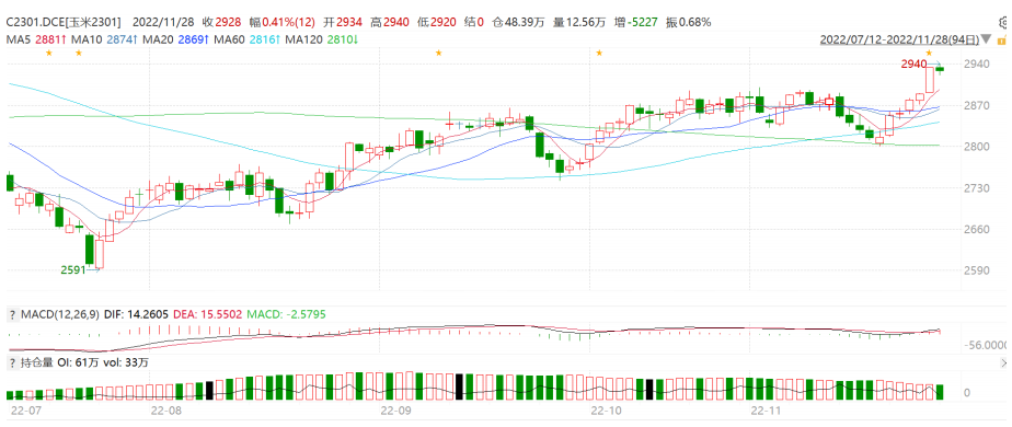 11月行情整體呈現先抑后揚態勢。農戶售糧進度偏慢,市場擔憂后期售糧壓力會壓制盤面價格,上半月價格價格呈下跌態勢。但產地持續惜售,貿易商挺價,深加工有備貨需求的前提下,不斷提價收購,玉米現貨價格持續上漲,帶動盤面強勢上漲。