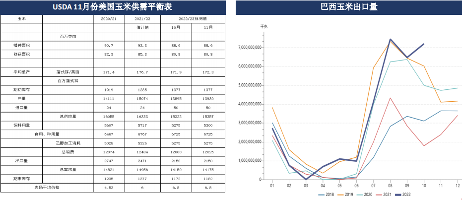 巴西谷物出口商協會(ANEC)表示,2022年11月份巴西玉米出口量預計達到663.9萬噸,高于上周估計的602.4萬噸。作為對比,10月份的出口量為624.4萬噸。去年11月份為274.1萬噸。